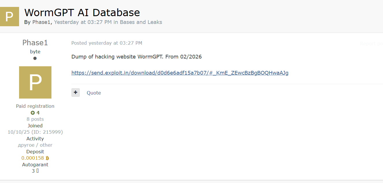 验证状态:未获官方确认,WormGPT 运营方未回应