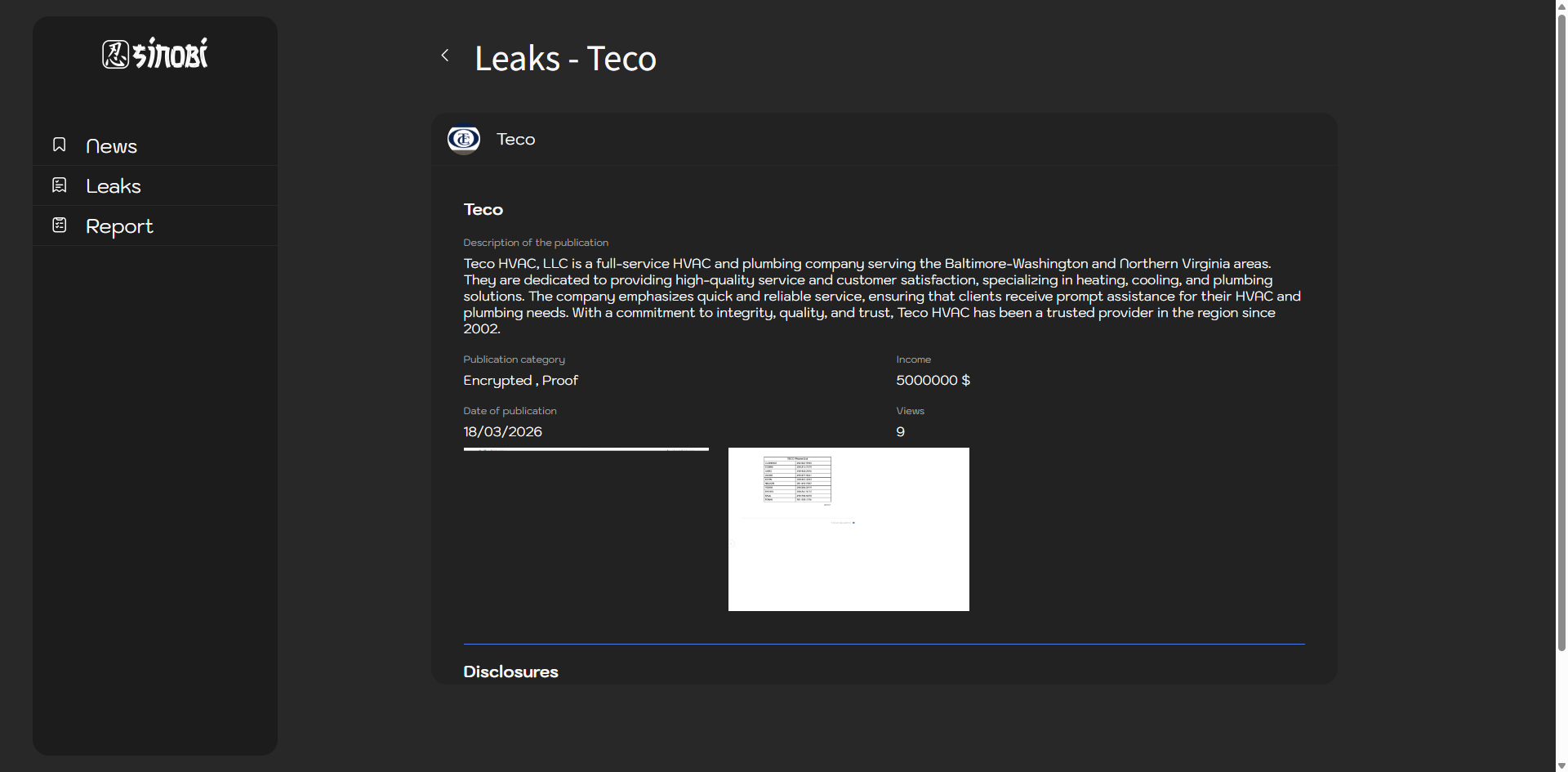 威胁行为者在黑客论坛上发布帖子,涉及美国Teco HVAC LLC公司的数据。该公司是一家提供全面暖通空调和管道服务的公司,服务于巴尔的摩-华盛顿和北弗吉尼亚地区,自成立以来专注于供暖、制冷和管道解决方案。