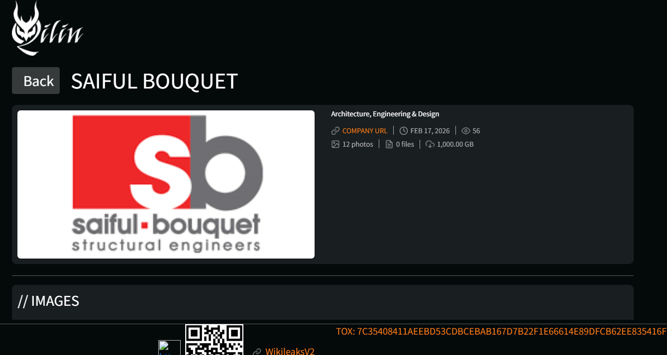 Saiful Bouquet Structural Engineers(赛福布凯结构工程公司)已被宣称是Qilin(麒麟)勒索软件组织的受害者。结合Qilin勒索软件的典型攻击惯例及结构工程机构的业务特点,该组织大概率已完成对该机构的系统入侵、核心数据窃取及文件加密操作,正以“数据泄露+文件解密”为要挟实施双重勒索,对该机构的正常经营、项目交付及客户隐私构成严重威胁。