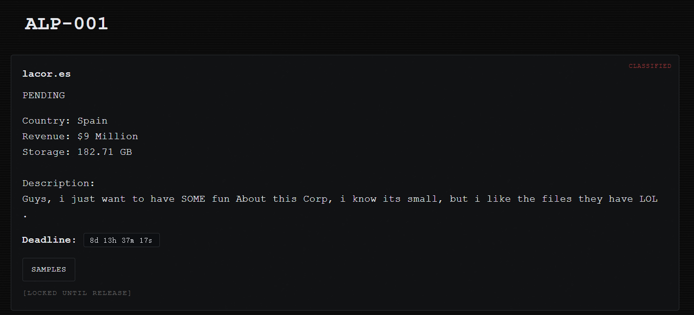 黑客论坛上曝光了西班牙一家小型企业的内部数据,包含运营文件、财务记录、员工资料、合同协议、业务往来记录等敏感信息,总数据量达182.71GB。