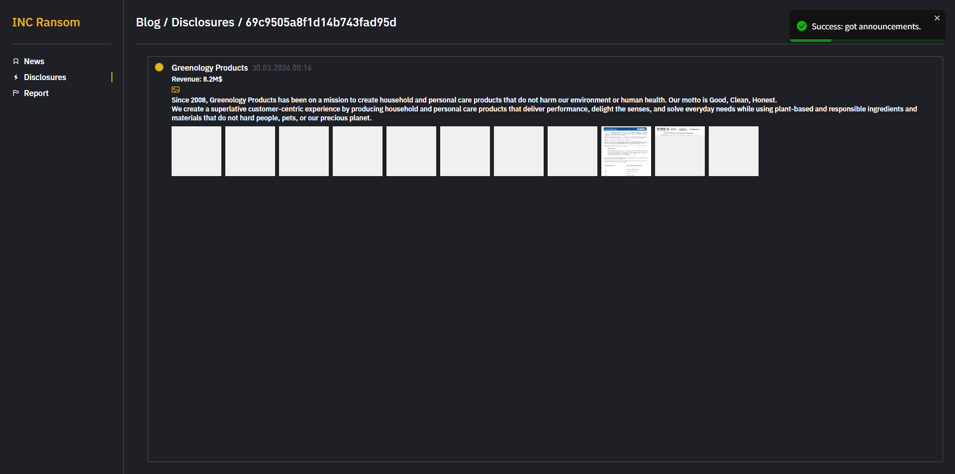 黑客论坛上曝光了美国Greenology Products的内部数据,该公司自2008年起专注于生产不伤害环境或人体健康的家居及个人护理产品,包含产品配方、客户资料、财务记录、供应商合同及内部运营文件等敏感信息。