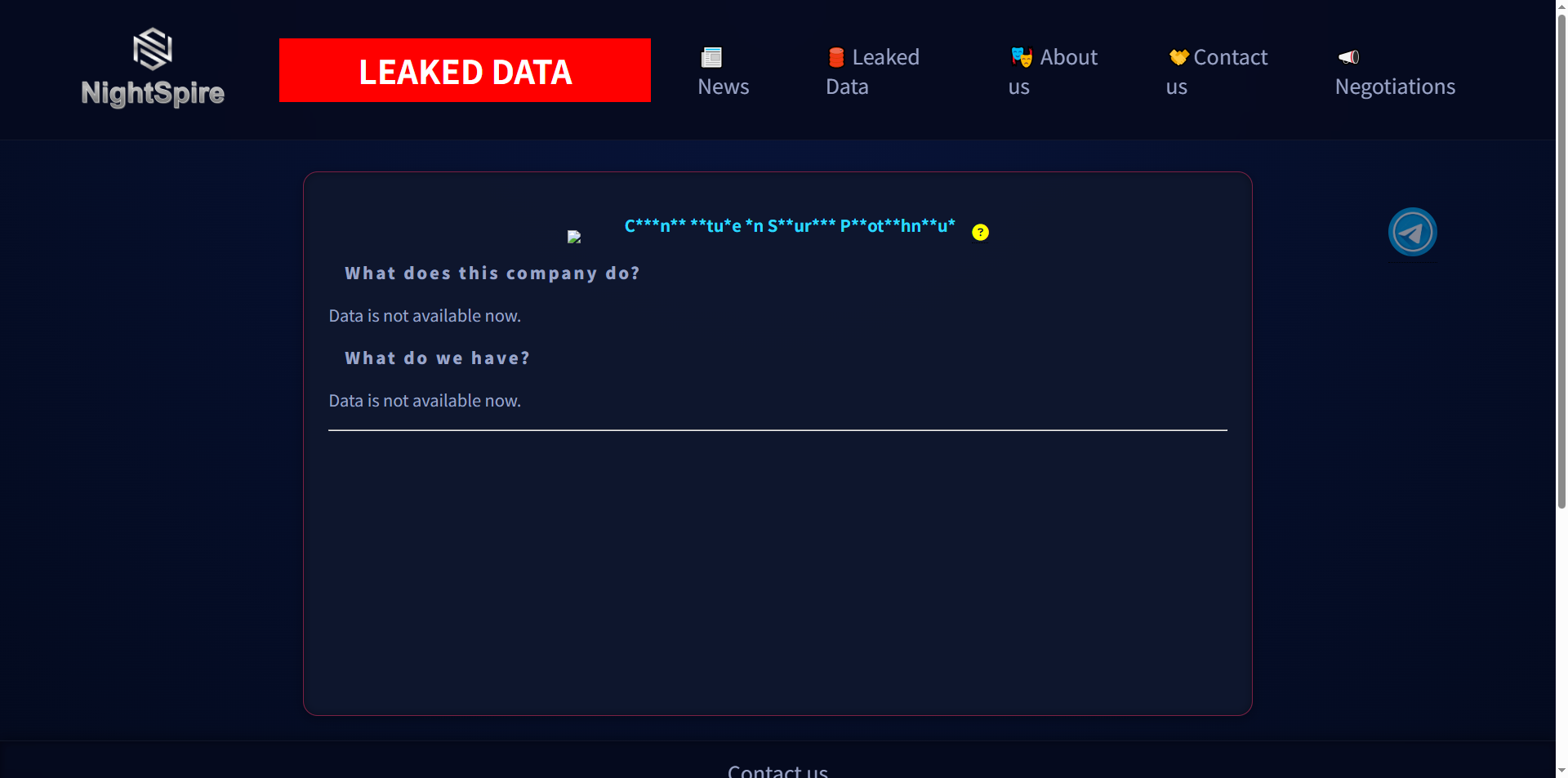 黑客论坛NightSpire曝光法国烟火安全研究事务所(Cabinet d’Étude en Sécurité Pyrotechnique)的内部数据,目前处于公开倒计时阶段(剩余1天22小时02分21秒),预计将泄露公司核心业务数据、客户信息、财务记录及烟火安全相关敏感文件。