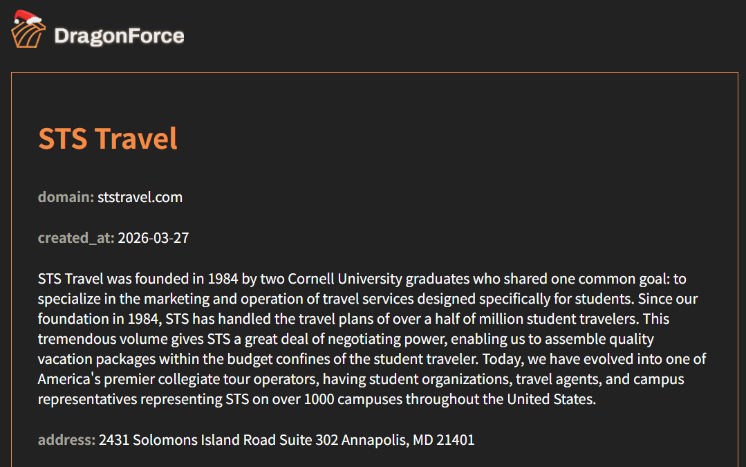 STS Travel 成立于1984年,由两名康奈尔大学毕业生创立,专注于为美国大学生提供专属旅行服务,已为超过50万名学生旅客规划行程,目前在美国1000多个校园设有学生组织、旅行代理及校园代表。此次完整企业详细信息在暗网被公开,可能面临后续安全风险。