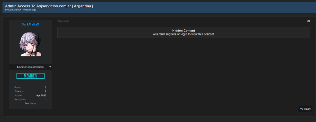 黑客论坛出售阿根廷公司Asjservicios.com.ar完整管理员后台访问权限,攻击者已成功获得该网站的管理控制权。
