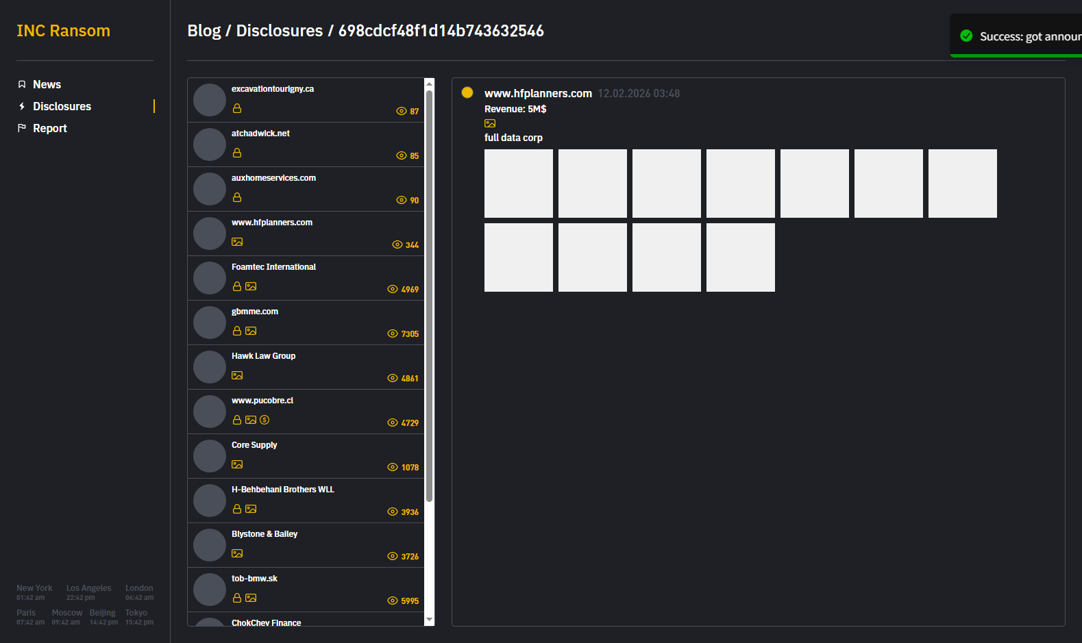 INC 勒索软件团伙宣称入侵了美国设施规划与管理企业HF Planners,HF Planners是一家设施规划与管理相关企业,信息来源于泄露页面所列其官方网站。