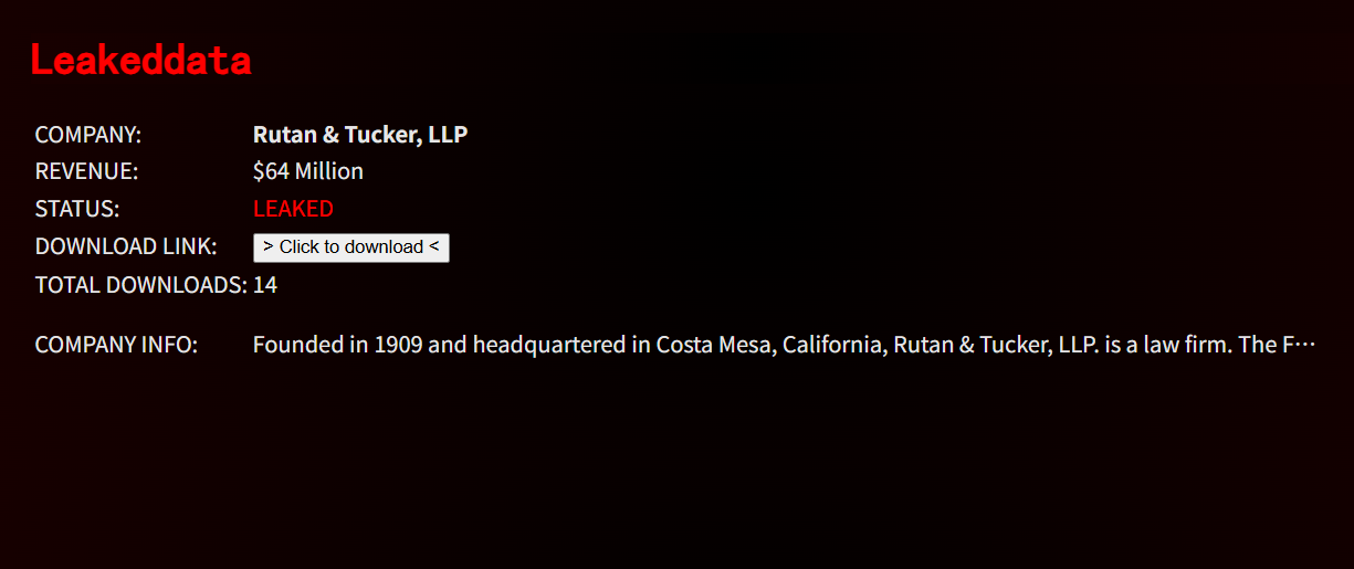 零零信安暗网新闻 | 美国加州Rutan & Tucker律师事务所数据泄露