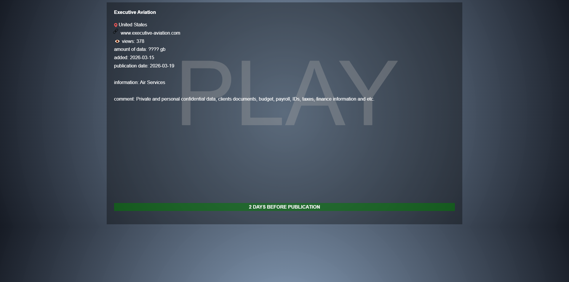 Executive Aviation是一家美国航空服务公司。威胁行为者在黑客论坛上声称将公开该公司的内部数据,涉及私人机密信息。