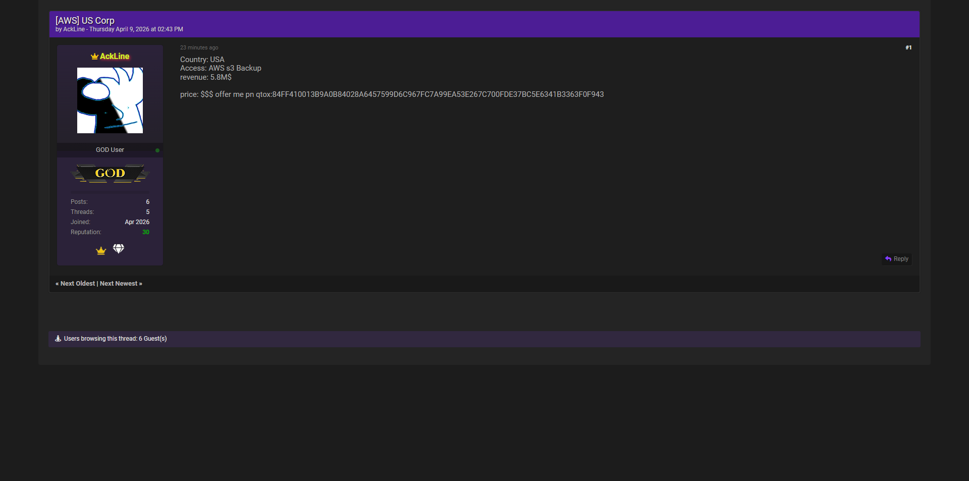 黑客论坛出售美国某公司AWS S3备份完整访问权限,该备份包含公司大量运营数据、客户信息、财务记录及内部业务资料,该公司年营收约580万美元。